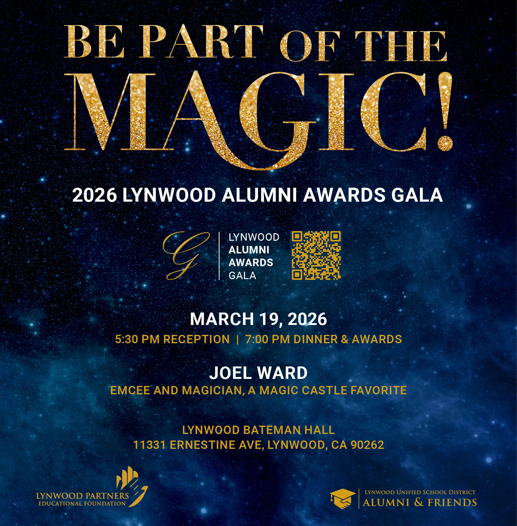 This signature celebration honors the incredible achievements of Lynwood Unified School District alumni who continue to make a powerful impact in their careers and communities. Each year, this event brings together students, alumni, educators, civic leaders, and supporters to shine a spotlight on Lynwood excellence.